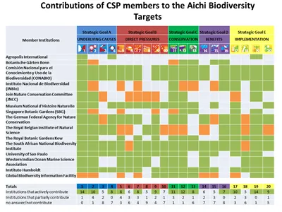 Overview of the CSP members’ contributions to the Aichi Biodiversity Targets