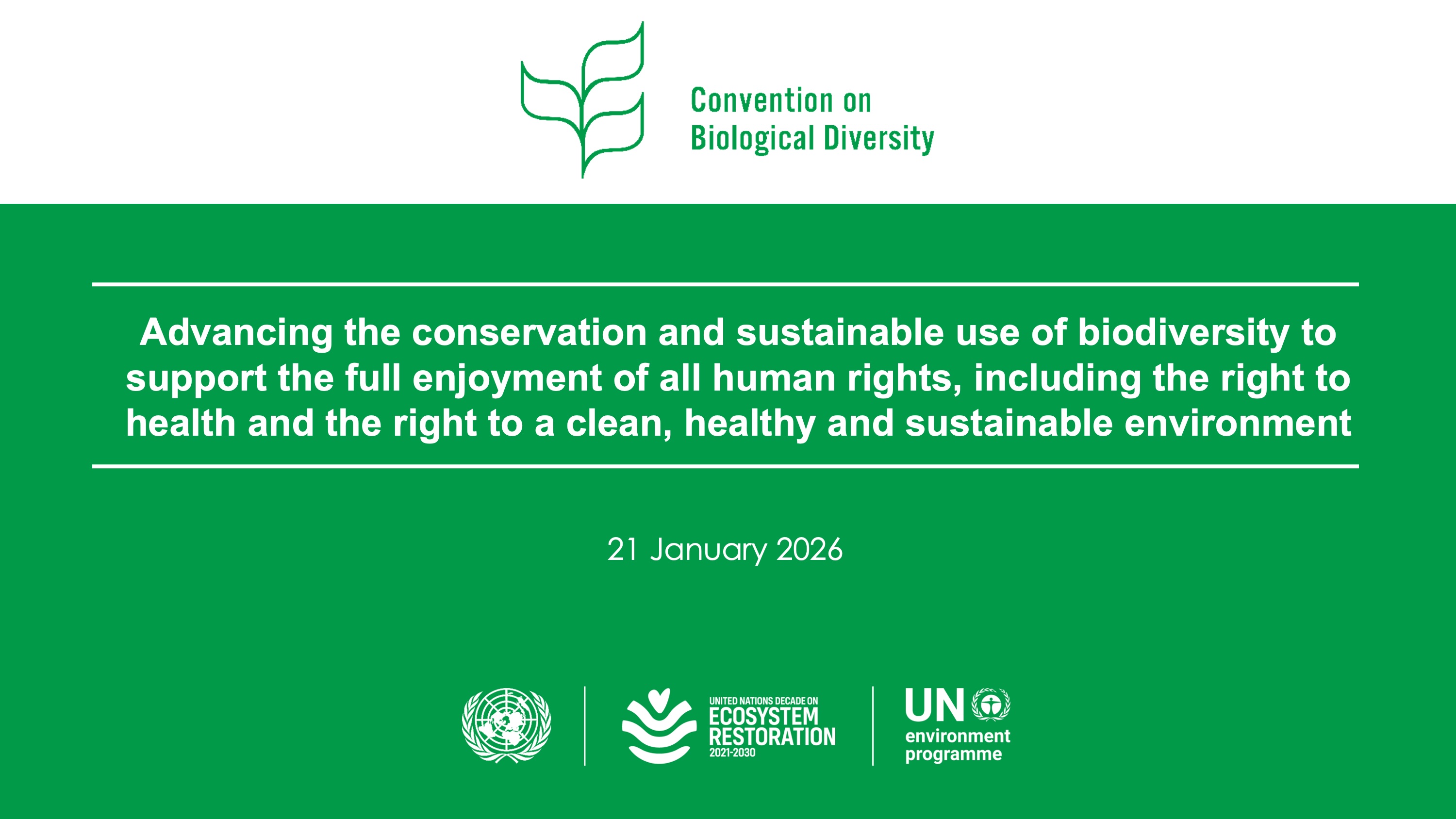 21 January 2026: Information webinar on Advancing the conservation and sustainable use of biodiversity to support the full enjoyment of all human rights, including the right to health and the right to a clean, healthy and sustainable environment