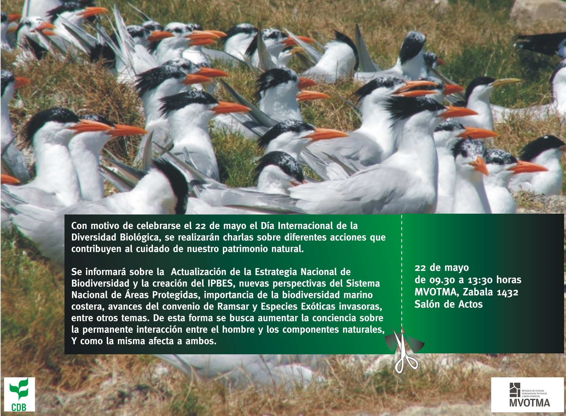 International Day for Biological Diversity - 22 May 2012 Year 2012 CBD Programme of Work on Marine and Coastal Biodiversity International Day for Biological DiversityHow Much Life Is in the Sea?MessagesBookletLogoCelebrations 2012 // Uruguay Monday // 5.21.2012 Uruguay MVOTMA 22 de mayo 2012, Montevideo Con motivo de celebrarse el 22 de mayo el Día Internacional de la Diversidad Biológica, se realizarán charlas sobre diferentes acciones que contribuyen al cuidado de nuestro patrimonio natural. Leer más. AficheProgramaSitio web MVOTMA