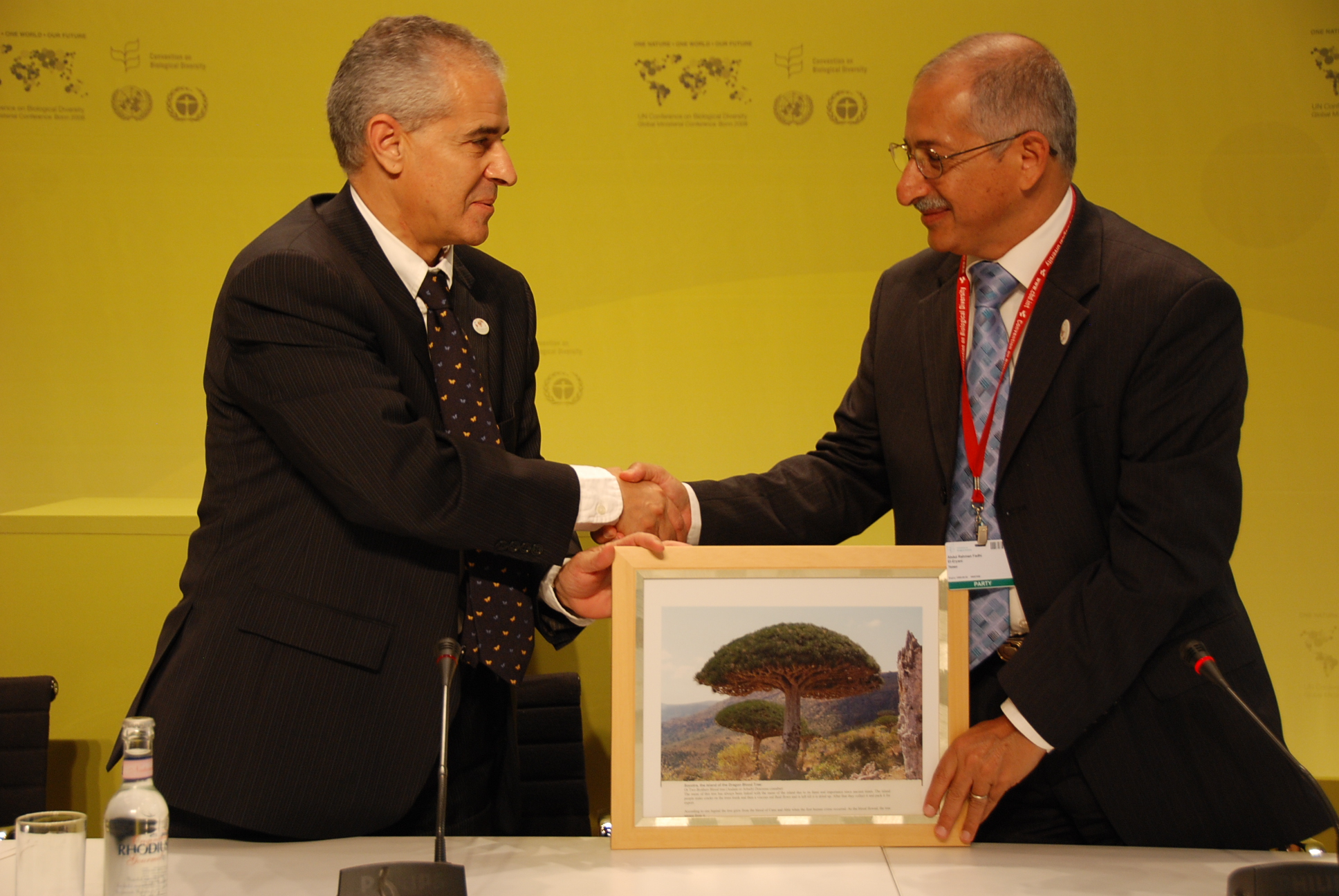 His Excellency Abdul Rahman Al-Eryani, Yemen Minister of Water and Environment, presents a gift for the CBD Museum of Nature and Culture |
